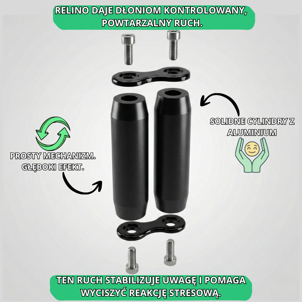 RELINO daje dłoniom dokładnie to, czego potrzebują: powtarzalny, spokojny ruch, który pomaga wyciszyć nadmiar bodźców, rozładować napięcie i odzyskać kontrolę nad koncentracją.