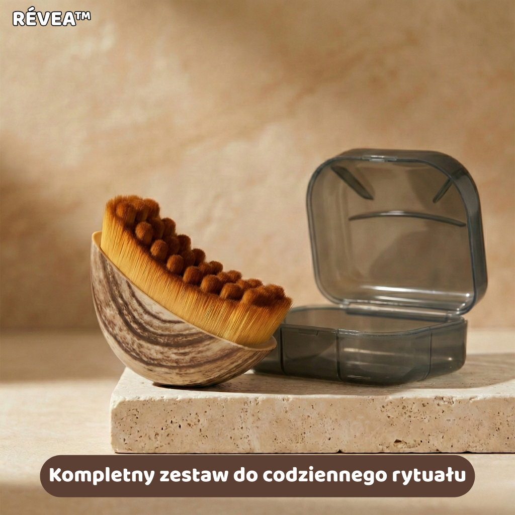 RÉVEA sprawia, że wykonujesz te ruchy intuicyjnie i bez wysiłku szczotka prowadzi po skórze w sposób płynny, delikatny i naturalny
